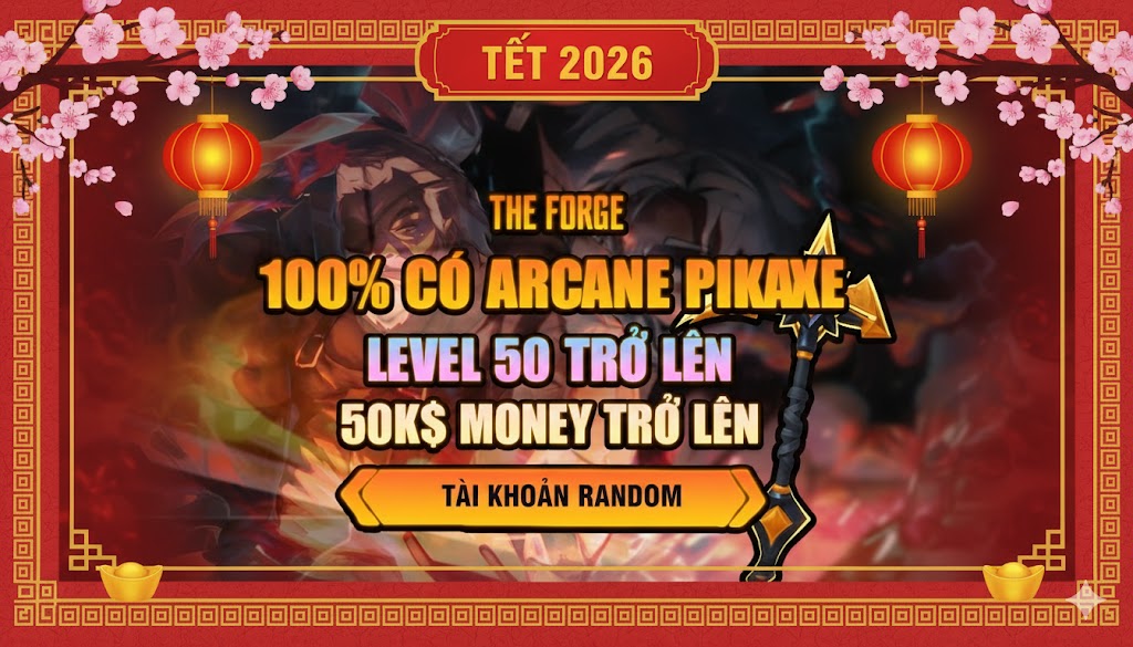 The Forge Arcane Pickaxe Level 100 + Random Tộc